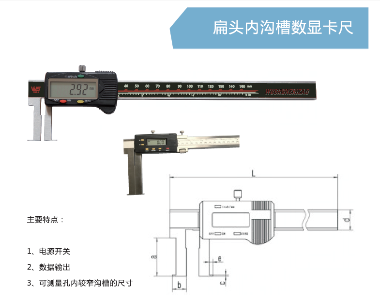 扁頭內(nèi)溝槽數(shù)顯卡尺